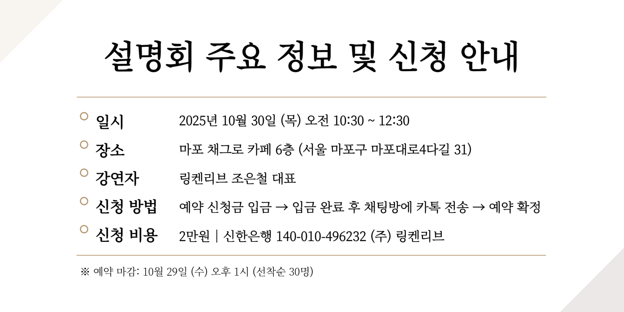 설명회 참석 고객 전원 링켄리브 프리미엄 여행 택(Tag) 증정