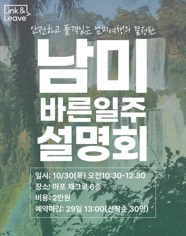 따라서 이번 설명회에 오셔서 남미 여행 정보는 물론,