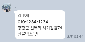 1. ์ฑํจ, ์ฐ๋ฝ์ฒ, ์นด๋์๋ น ์ฃผ์, ์ ๋ฌผ๋ฐ์ค๋ฅผ ๋ณด๋ด์ฃผ์ธ์!