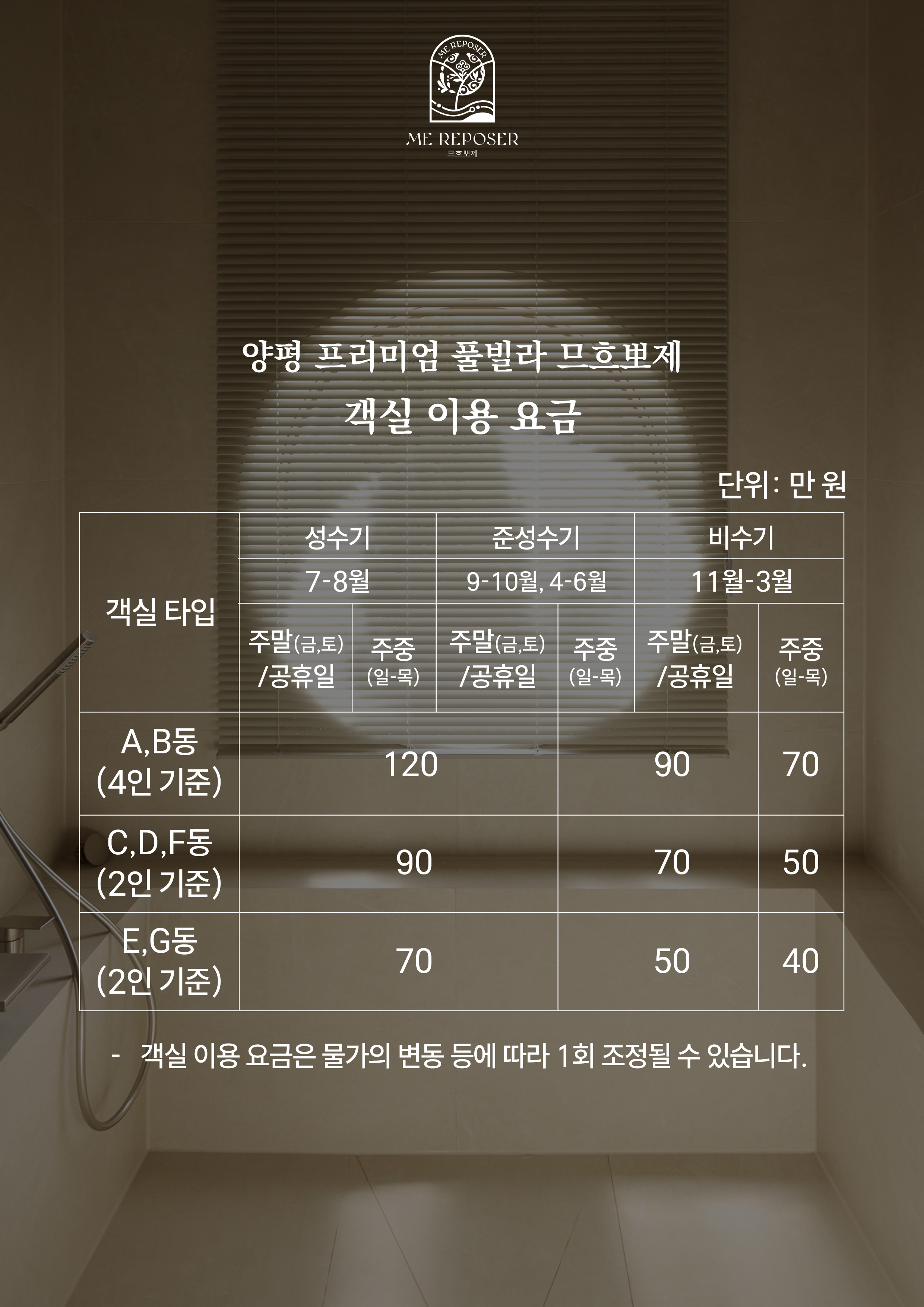 객실 타입에 따라 책정된 기준 요금입니다.