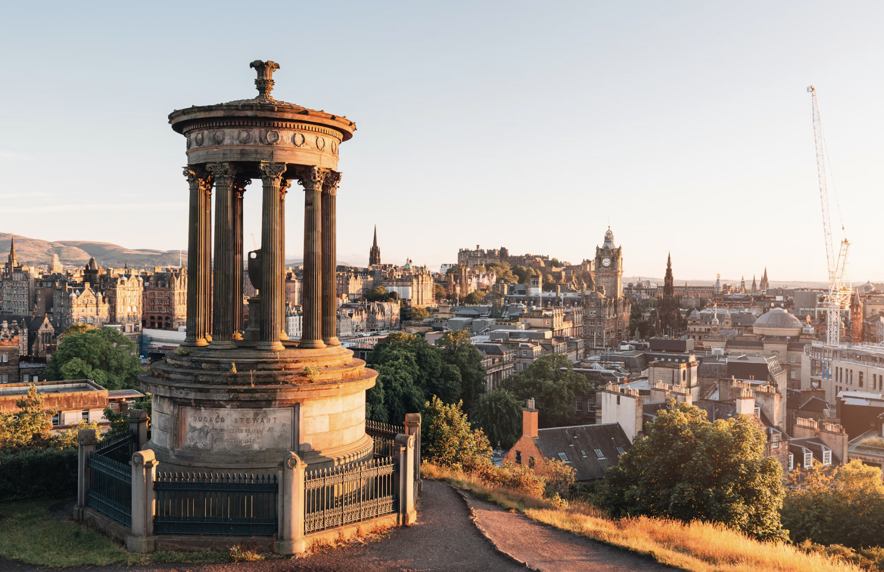 에딘버러의 칼튼 힐(Calton Hill)은 구시가지와 신시가지 사이에 위치한 언덕으로, 도시의 역사와 상징성이 응축된 장소이다. 특히 이곳은 에딘버러 성, 올드타운, 신시가지, 포스만(Firth of Forth)을 한눈에 내려다볼 수 있는 대표적인 전망 명소로, 일출과 일몰 풍경이 아름답기로 유명하다.
