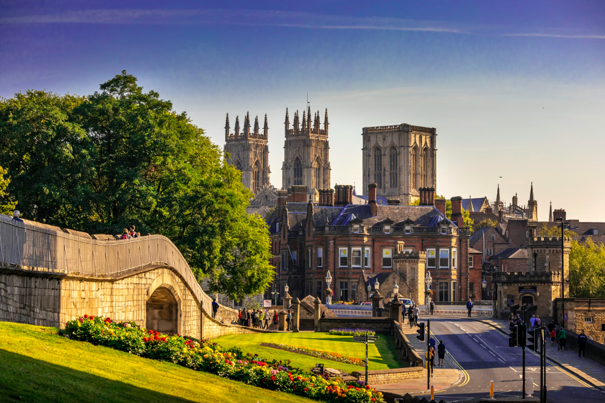 잉글랜드 북부의 요크(York)는 로마 시대부터 이어진 역사적인 도시로, 중세 건축과 고대 유적이 잘 보존되어 있는 곳이다. 특히 요크 민스터(York Minster)라는 웅장한 고딕 성당이 도시의 상징이며, 아름다운 스테인드글라스와 장대한 구조가 방문객을 압도한다. 좁은 골목과 요크 성벽을 따라 걸으면 중세 분위기를 그대로 느낄 수 있고, 전통 상점과 카페가 늘어서 있다. 요크는 역사와 문화, 건축이 조화를 이루는 도시로, 여행자들에게 영국의 전통과 중세 문화를 생생하게 보여주는 곳이다.