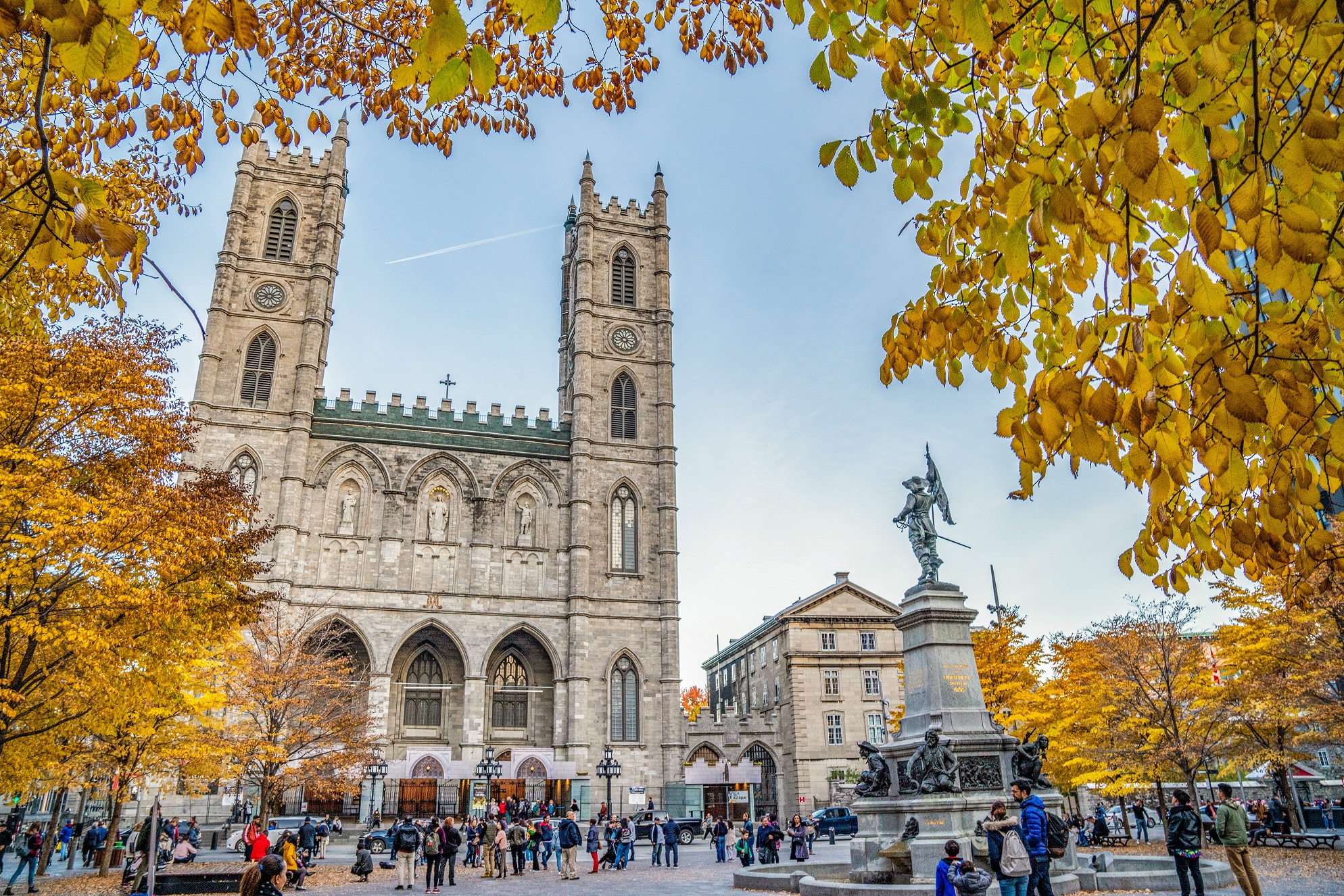 몬트리올을 대표하는 상징적인 성당으로, 파리 노트르담을 떠올리게 하는 고딕 리바이벌 양식의 외관과 화려한 파란·금빛 내부 장식이 압도적입니다. 스테인드글라스와 목조 구조물이 어우러진 성당 내부는 예술 작품처럼 아름답고, 밤에는 ‘AURA’라는 빛과 음악의 쇼도 진행됩니다.