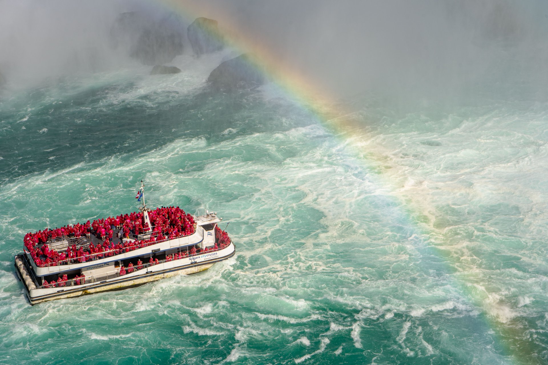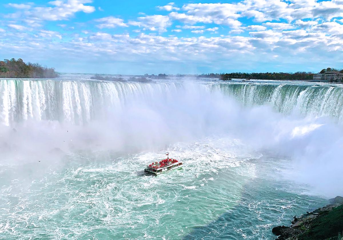 나이아가라 크루즈는 배를 타고 폭포 바로 아래까지 접근해 폭포의 힘과 물안개를 직접 온몸으로 느낄 수 있는 대표 체험입니다. 배가 천천히 폭포 앞으로 다가가면, 굉음과 함께 떨어지는 엄청난 물줄기와 몰아치는 물안개가 만들어내는 스릴이 잊을 수 없는 순간을 선사합니다. 특히 호스슈 폭포(Horseshoe Falls) 아래로 들어가는 순간은 크루즈의 하이라이트로, 자연의 거대한 에너지를 가장 가까이에서 경험할 수 있습니다.
