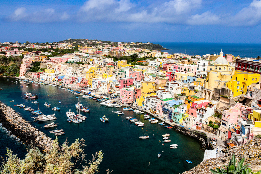 마리나 코리첼리는 프로치다 섬에서 가장 매력적인 어촌 마을로, 알록달록한 집들이 계단처럼 이어져 바다로 흘러내리는 풍경이 특징입니다. 이 마을은 영화 「일 포스티노(Il Postino)」의 주요 배경으로 사용되면서 전 세계 영화 팬들에게 널리 알려졌습니다. 좁은 골목과 항구 주변에서는 전통 어촌의 생활과 현대 관광이 자연스럽게 공존하며, 어부들이 갓 잡은 해산물을 나르는 장면은 여전히 일상 속에서 볼 수 있습니다. 해안가 카페와 레스토랑에서는 지중해의 신선한 해산물과 현지 와인을 즐길 수 있으며, 항구를 따라 산책하면 섬의 역사와 문화를 직접 체험하는 기분을 느낄 수 있습니다.