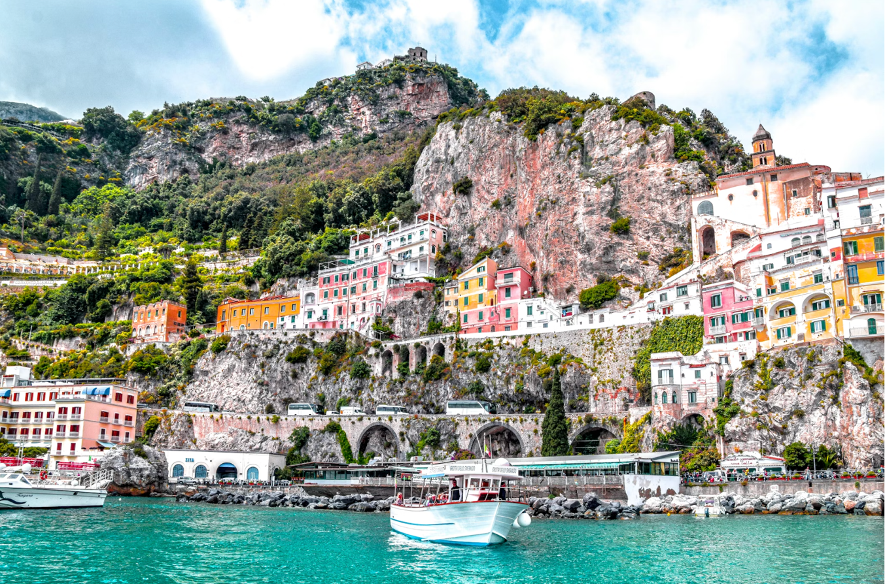 이탈리아 남부 티레니아 해를 따라 펼쳐진 아말피는 절벽과 바다가 만들어낸 가장 극적인 풍경의 해안 도시입니다. 아찔한 절벽 위로 층층이 이어진 파스텔톤 집들과 푸른 지중해가 어우러져, 마치 한 폭의 그림 같은 장면을 연출합니다. 중세 시대, 아말피는 지중해 무역을 장악했던 4대 해상 공화국 중 하나로, 오늘날에도 웅장한 두오모 대성당(Duomo di Amalfi) 과 좁고 미로 같은 골목 곳곳에서 그 영광의 흔적을 느낄 수 있습니다. 특히 아말피는 레몬의 도시로도 유명해, 향긋한 레몬 리큐어 리몬첼로와 상큼한 디저트, 바닷바람 가득 머금은 해산물 요리가 여행의 즐거움을 배가시킵니다.